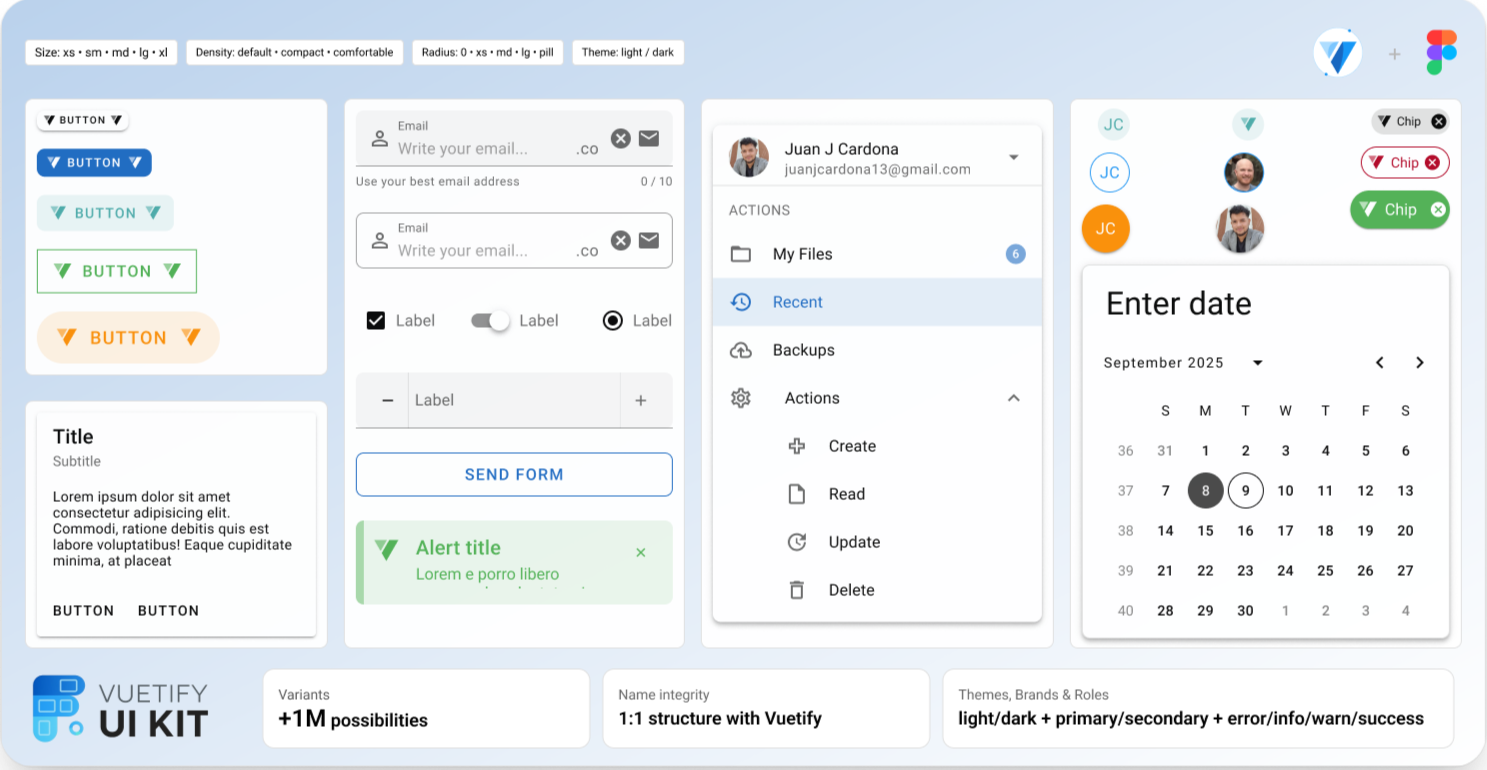 Ready to supercharge your design workflow? The brand-new Vuetify UI Kit 3.0 is here — rebuilt, expanded, and more customizable than ever. Fully optimized for Figma and based on Material Design - Vuetify, this update unlocks professional-grade flexibility for apps, dashboards, and modern websites. 🚀