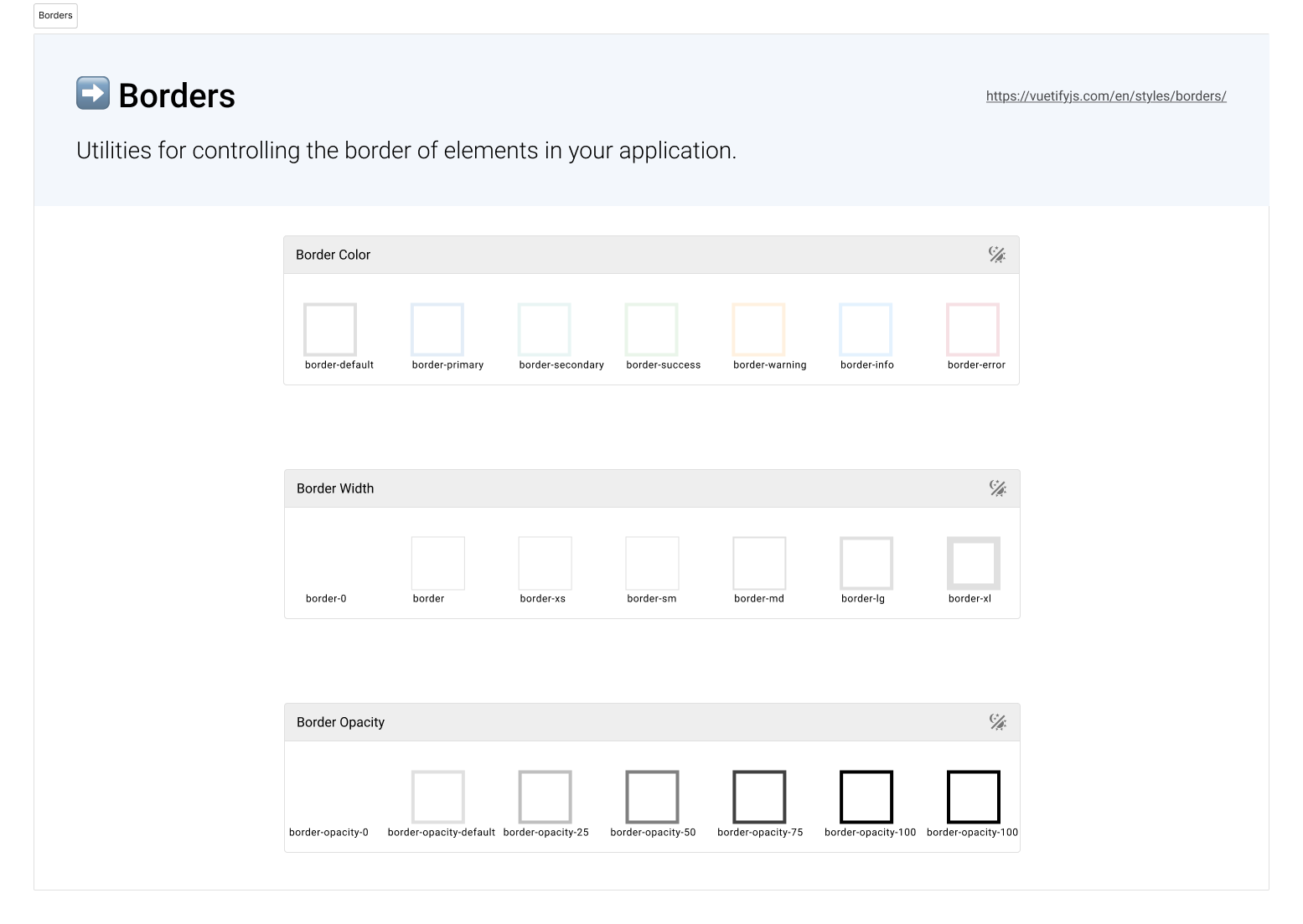 ⬜ Advanced Border Options: Control color, width (xs–xl), opacity (0–100) and radius (square, xs–xl, pill, circle).